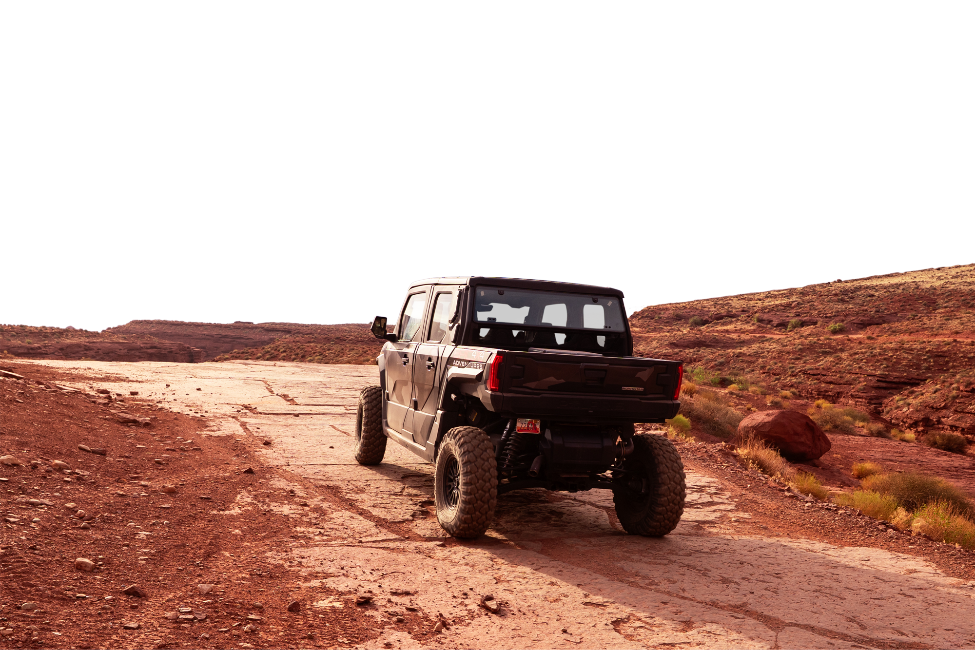You’ll be in command of a Polaris Xpedition XP5 Northstar, Moab's premier fully enclosed, climate-controlled UTV. This high-performance vehicle was built for exploration, combining rugged off-road capability with unexpected comfort: air conditioning, heat, premium suspension, and a sealed cab that lets you stay immersed—without getting caked in dust or scorched by the sun.