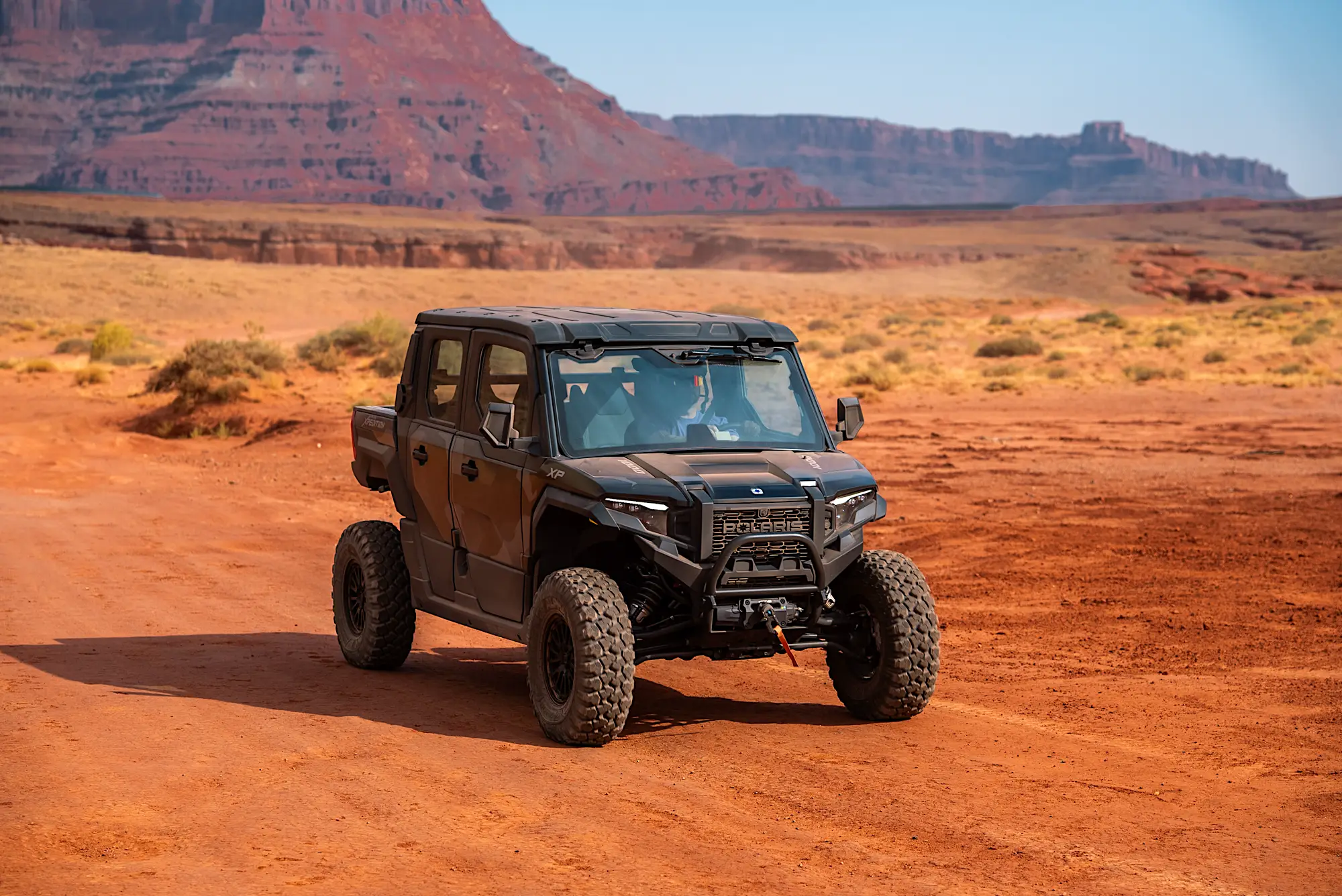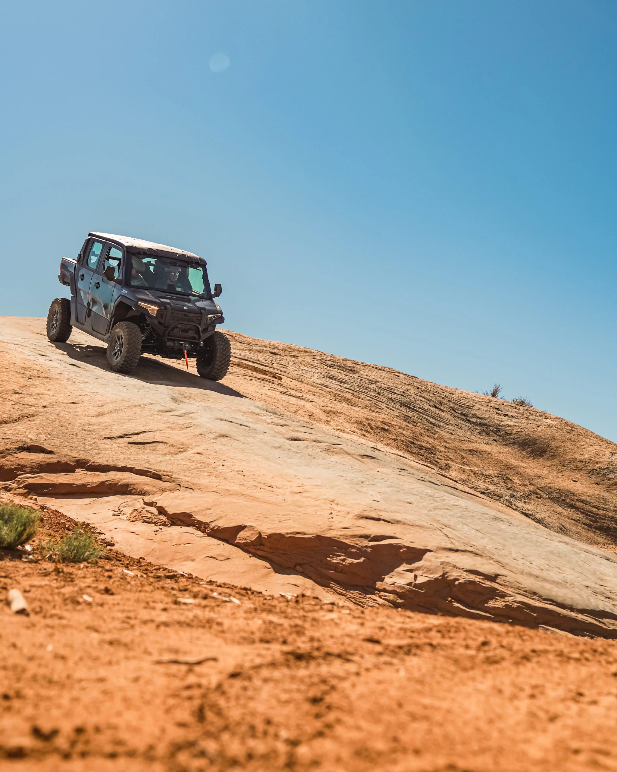 The Polaris Xpedition XP5 Northstar isn't just another UTV—it's your climate-controlled gateway to experiencing Moab's most spectacular backcountry without battling dust, heat, or weather. As the only tour operator in Moab offering fully enclosed, climate-controlled UTVs, we've redefined what off-road adventure can be.